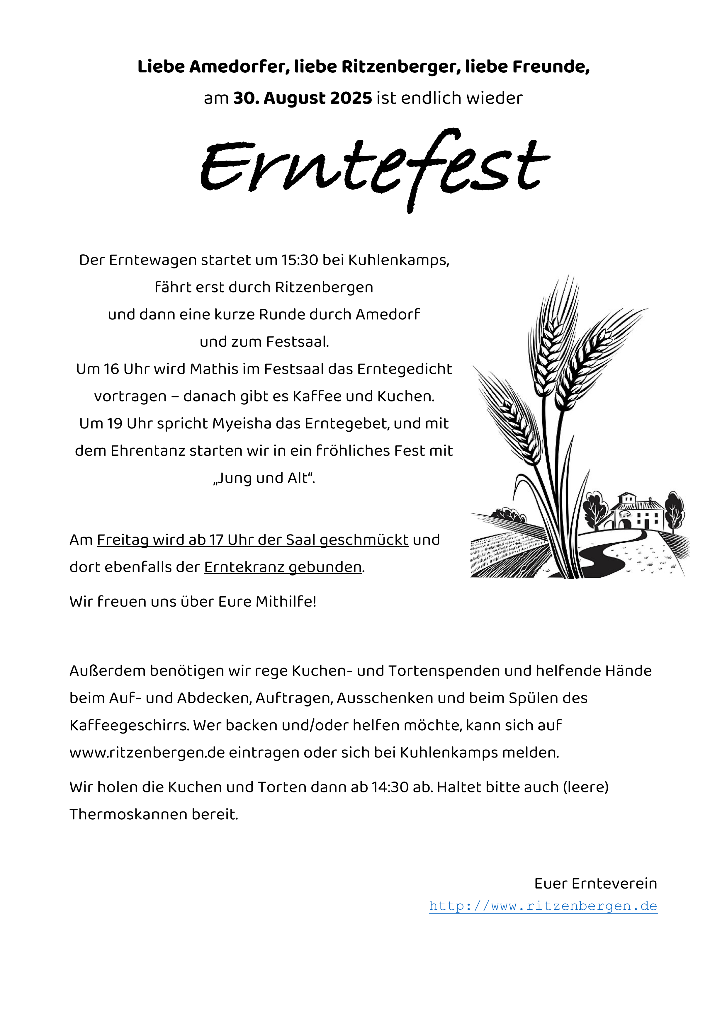 Dies ist eine private Homepage über das Dorfleben in Amedorf und Ritzenbergen